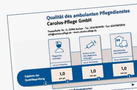 Zwei mal jährlich werden durch den Medizinischen Dienst der Krankenkassen Qualitätsprüfungen aller Ambulanten Pflegedienste durchgeführt. Wir haben einen hohen Anspruch an die Betreuung unserer Patienten und möchten stets unsere Leistungen... mehr